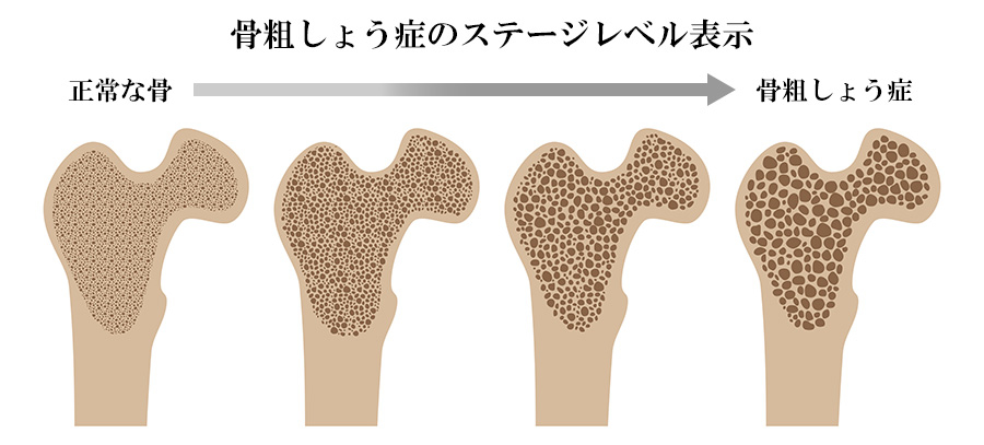 骨粗しょう症をはじめとする骨の病気は、初期には自覚症状が極めて少ない傾向がありますので、痛みを感じてからでは進行しているケースが多く、早期発見が非常に困難です。