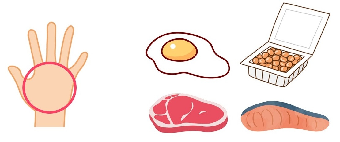 ポイント)手の平を目安におおよそのたんぱく質量を把握しておきましょう。